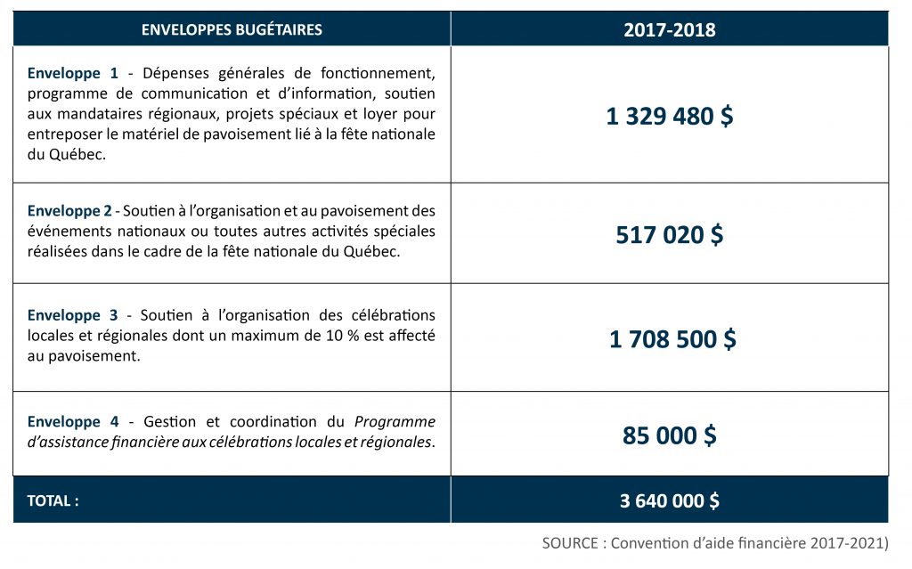 - Transmettre aux Québécoises et Québécois la fierté du Québec et susciter leur participation aux célébrations par l’entremise d’une promotion des festivités de la Fête nationale.